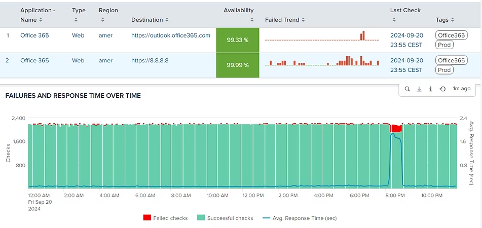 Ejecute pruebas HTTP(S) contra endpoints externos críticos (p. ej., Microsoft 365, APIs públicas)