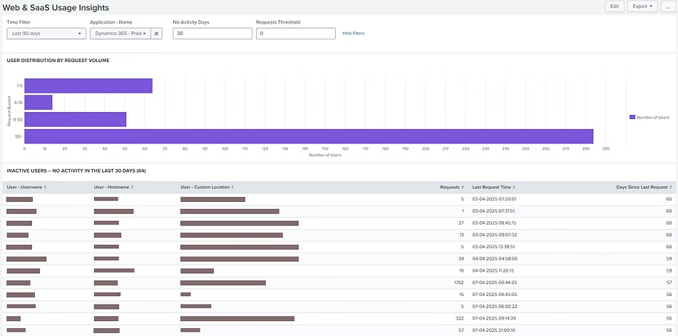 Obtenga visibilidad completa sobre el uso de aplicaciones SaaS y web para identificar usuarios inactivos. Tome decisiones más inteligentes sobre licenciamiento y dirija la capacitación a los usuarios adecuados para maximizar el valor de cada aplicación.