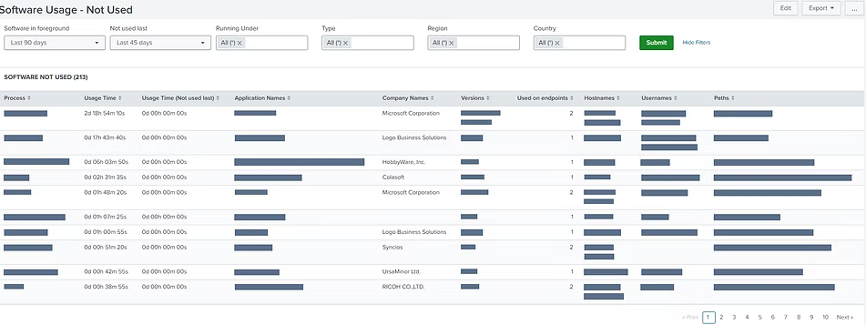 Identifique software instalado que no se ha utilizado recientemente para reducir costos, simplificar los endpoints y reforzar la seguridad.